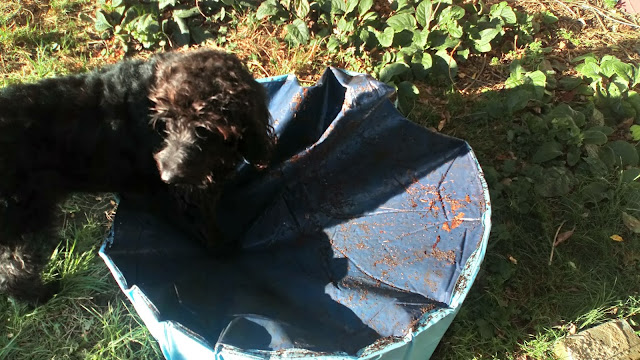 From what I can see through the upstairs window (not that I'm snooping), the lot used to be an Edwardian garden, now gone to the foxes. In addition to roses & fruit trees, it has several climbers scrambling the wall between the properties, attempting murder by strangulation of my potted shrubs & trees. All summer, I waged merciless war against those climbers until the leaves turned colour & the Virginia creeper turned my head.