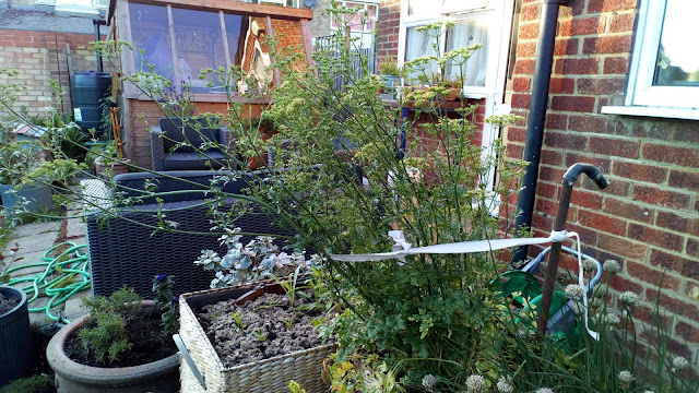It's amazing how established all these plants look. This area was lawn when we moved here in February, with only the anemone & day lilies just coming up at the back. There'll be some tweaking next year so the wall can be used for either peas or cucumelon. Maybe both.
